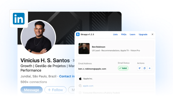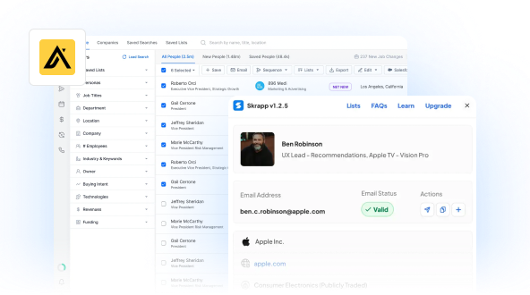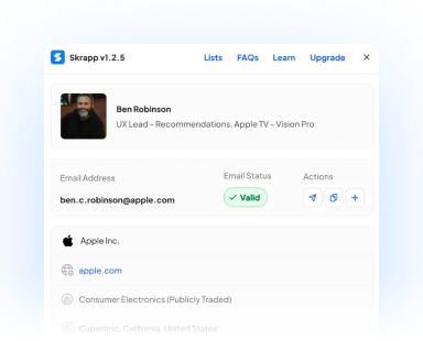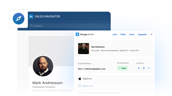 Whether you're prospecting on Sales Navigator or uploading lists to find contacts in bulk, Skrapp helps you build accurate lead lists.